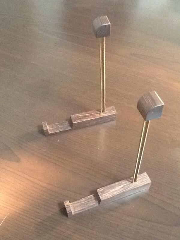 今流してるCDのケースをコンポの上に立てておきたいとという考えから作った作品。CDケースを差し込む溝を貫通するタイプと貫通しないタイプとを作ってみました。 そして、いつものように約15度の傾きをつけてます。個人的な感覚ですが、やっぱり15度位の傾きがちょうど見やすいと思うのですよね。 溝が貫通しないタイプはどっしりとした安定感が感じられて、溝が貫通してるタイプはスマートな感じがする。どっちが良いかは好みの問題かな? でも、溝が貫通しないタイプは、加工にかかる手間が格段に増えちゃうのよねぇ……。調整がすごく難しいし……。