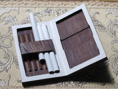 開閉できるタイプの最初の作品。ロングサイズの煙草が6本入る煙草入れです。底面側には煙草が収まるようにU字の溝が刻んであります。