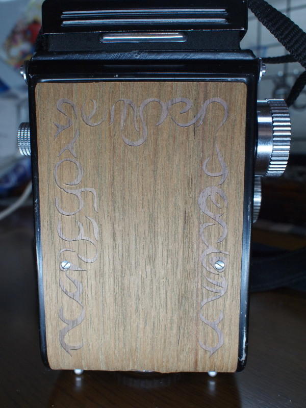 アンティークショップで売られてたという2眼レフカメラのリペアをした結果です。カメラの内部は、実にシンプルな機械仕掛けだったので、結構簡単に直せました。 が、外側に貼られてた合皮がもう、劣化しまくりで剥がしたらぼろぼろに崩れちゃう状態に……。金属剥き出しのままではいかにもかわいそうだったので、ホームセンターでたまたま見かけた天然木シートを使って化粧を施してみました。