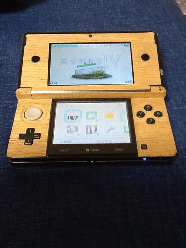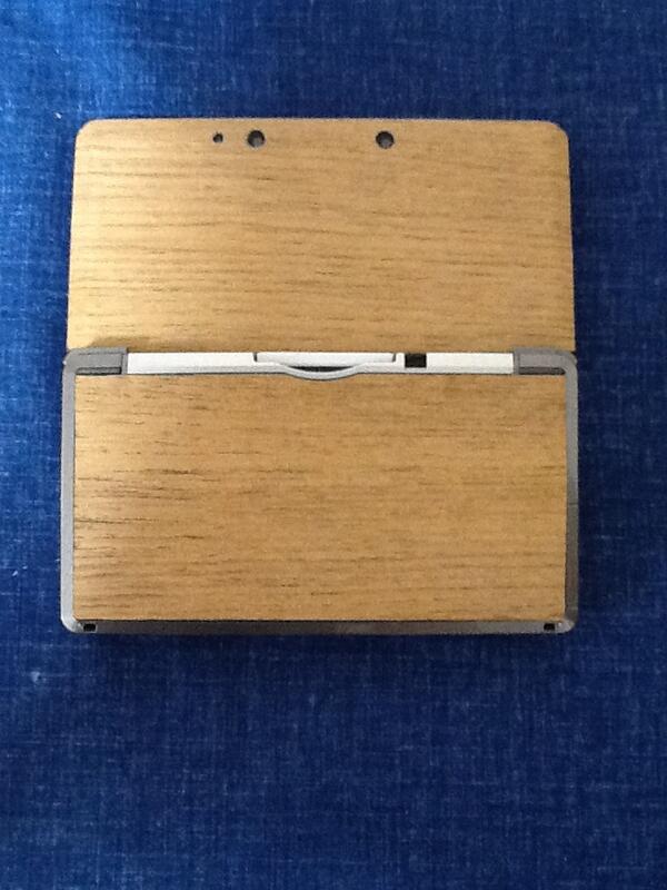 使ってる3DSの表面があんまり気に入らなかったので、化粧を施してみた。市販でもこういう保護シート(?)は売ってるんだけど、気に入るのがなかったのもあって……。そんなこんなで、いろいろお世話になってる天然木シートを貼ってみちゃいました。 定規で寸法を測りながら型紙を作ってたので、細かい部分に粗が目立ってますが……。角の立体的な曲線とかを綺麗に貼るのは難しいよね。まぁ、全体としては気に入ってるので良しとしています。