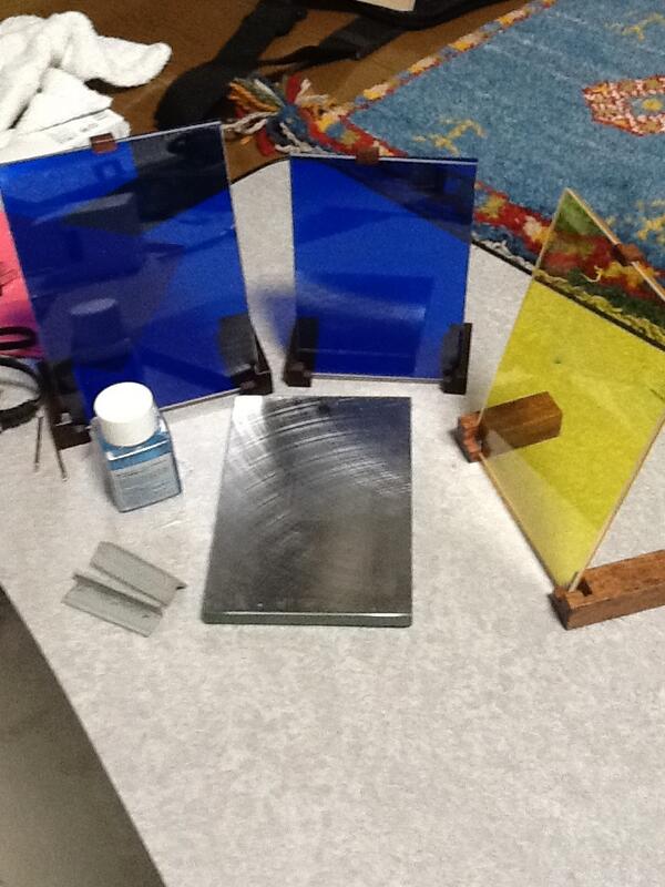 アクリル板2枚、土台用木材2個、止め具用木材と3種類の部品だけで構成されてます。大きさは挟むものに合わせて作ってますので、今までに、L版写真用、2L版写真用、絵葉書用、B5用、A4用など色んなサイズで作ってきました。 アクリル板の色を変えるだけで、同じものを挟んでも雰囲気がかなり変わるところが面白い部分だと思うのです。写真に示してるはかなり濃い色のばかりですが、薄い色アクリル板を使ったり、不透明なアクリル板を使ったりも出来るので、色んな組み合わせが楽しめちゃいます。 挟む用紙の周囲の約1cmずつ余白がその楽しみを出してくれるのです。あと、アクリル板をはめ込む土台用木材は、溝が貫通するタイプと溝が貫通しないタイプとありますが、溝が貫通してた方が扱いやすいし、加工も楽なんですよね。 でも、溝が貫通しないタイプにはどっしりとした安定感が感じられて好きなんです。加工がもの凄く面倒で難しいのですが……。